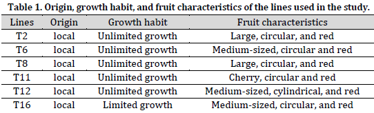 Six lines of tomato bred in the general commission for scientific agricultural research have been used in this study. Those lines are characterized by high variation in growth habits, earliness, and fruit traits (Table 1). Seeds were planted in trays and then transplanted after 21 days. Half-Diallel (excluding reciprocal) hybridization between the lines was carried out in the season of 2017. The seeds of the 15 hybrids and the parental lines were planted in the greenhouse in 2018 season in a completely randomized block design (RCBD) with three replications. The planting distance was 90 cm between rows and 40 cm between the plants in the same row. All agricultural practices were done according to GCSAR recommendations for greenhouse tomatoes.