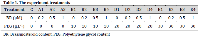 The experiment was conducted in a factorial design with two factors (PEG and BR) with a completely randomized design (CRD) and 15 replicates for each treatment.