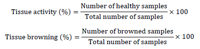 Visual inspections were conducted 8 weeks after BR and PEG treatments to determine browned and active samples. Tissue activity and browning were then estimated in each replicate using the following equations: